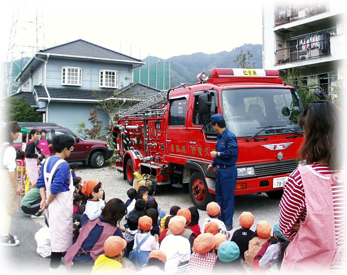 大避難訓練 消防自動車も来てくれて子ども達はとても嬉しい一日でした。